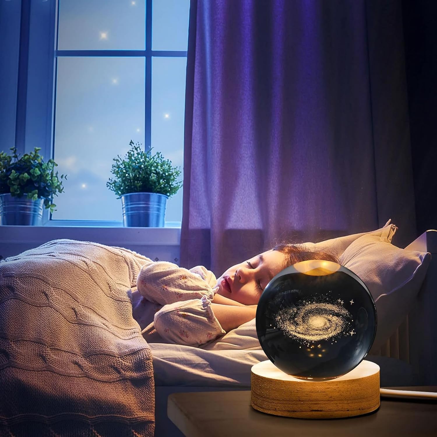 - 📦 Package Includes 1 x 3D Crystal Ball Night Lamp (Galaxy Design), USB Cable, 6 Warm White LEDs, Elegant Wooden Base – ready to illuminate any space with charm.
